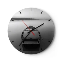Zegar ścienny - Samotna łódź na spokojnym jeziorze w czarno-białej tonacji - 30x30cm - Tęsknota i melancholia - Nowoczesna dekoracja ścienna do salonu, kuchni i sypialni ARTTOR