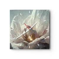 Zegar ścienny - Delikatny biały kwiat z subtelnymi złotymi akcentami - 30x30cm - Rozkwita raz na sto lat - Nowoczesna dekoracja ścienna do salonu i sypialni ARTTOR
