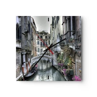 Zegar ścienny - Wenecki kanał z gondolą i kamiennym mostem - 30x30cm - Od wieków w cichej zadumie - Nowoczesna dekoracja ścienna do salonu i sypialni ARTTOR