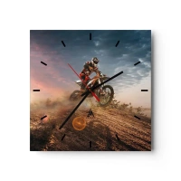 Zegar ścienny - Motocyklista na wydmach o zachodzie słońca - 30x30cm - Po zwycięstwo - Nowoczesna dekoracja ścienna do salonu i sypialni ARTTOR