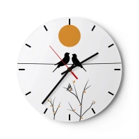 Zegar ścienny - Dwa ptaki na gałęzi pod pomarańczowym słońcem - 30x30cm - Słowiczy wieczór - Nowoczesna dekoracja ścienna do salonu, kuchni i sypialni ARTTOR