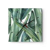 Zegar ścienny - Zielone liście w minimalistycznym, botanicznym stylu - 30x30cm - Zieleń sama w sobie - Nowoczesna dekoracja ścienna do salonu i sypialni ARTTOR
