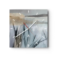 Zegar ścienny - Minimalistyczny pejzaż w delikatnych odcieniach błękitu - 30x30cm - Spokój aż po horyzont - Nowoczesna dekoracja ścienna do salonu i sypialni ARTTOR