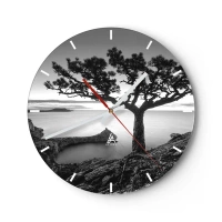 Zegar ścienny - Drzewo na klifie z widokiem na morze w czarno-białej tonacji - 30x30cm - Spokój aż po horyzont - Nowoczesna dekoracja ścienna do salonu, kuchni i sypialni ARTTOR