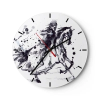Zegar ścienny - Czarnobiały jeździec na koniu w stylu akwareli - 30x30cm - Czarny rycerz - Nowoczesna dekoracja ścienna do salonu, kuchni i sypialni ARTTOR