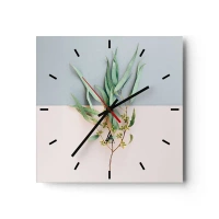 Zegar ścienny - Gałązka z liśćmi na tle pastelowych odcieni - 30x30cm - Pastelowa subtelność - Nowoczesna dekoracja ścienna do salonu i sypialni ARTTOR