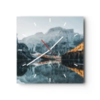 Zegar ścienny - Górski krajobraz z odbiciem w spokojnej tafli jeziora - 30x30cm - Lustrzany pejzaż - Nowoczesna dekoracja ścienna do salonu i sypialni ARTTOR