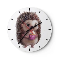 Zegar ścienny - Uroczy jeż trzymający kolorową babeczkę - 30x30cm - Święto jest co dzień - Nowoczesna dekoracja ścienna do salonu, kuchni i sypialni ARTTOR