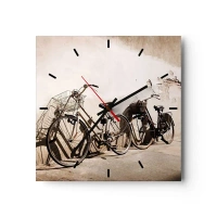 Zegar ścienny - Dwa rowery oparte o starą ścianę w stylu retro - 30x30cm - Niezapomniany urok przeszłości - Nowoczesna dekoracja ścienna do salonu i sypialni ARTTOR
