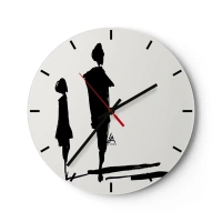 Zegar ścienny - Czarne sylwetki dwóch postaci na białym tle w szkicowym stylu - 30x30cm - Na pewno razem? - Nowoczesna dekoracja ścienna do salonu, kuchni i sypialni ARTTOR