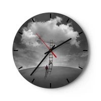 Zegar ścienny - Człowiek wspinający się po drabinie do chmury na tle nieba - 30x30cm - Wszystko możliwe - Nowoczesna dekoracja ścienna do salonu, kuchni i sypialni ARTTOR
