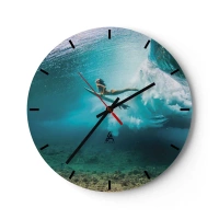 Zegar ścienny - Surferka płynąca pod falą w krystalicznej wodzie - 30x30cm - Podwodny świat - Nowoczesna dekoracja ścienna do salonu, kuchni i sypialni ARTTOR