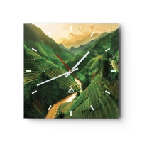 Zegar ścienny - Malownicze tarasy ryżowe w zielonej dolinie oświetlone zachodzącym słońcem - 30x30cm - Wietnamska dolina - Nowoczesna dekoracja ścienna do salonu i sypialni ARTTOR